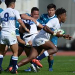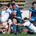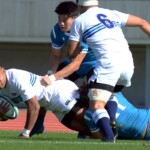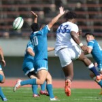 今度は、摂南大。10分、敵陣22M付近でのラインオフサイドに対し、これも迷わずPGを選択、ほぼ中央からCTB⑬ヴィリアミ・ツイドラキが決めてイーブンスコアとする。(3-3)
