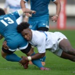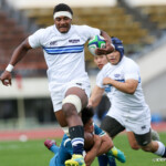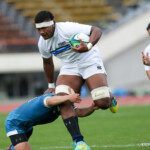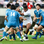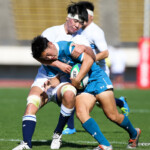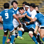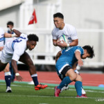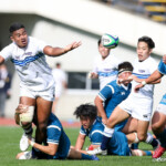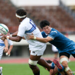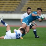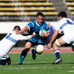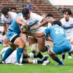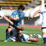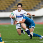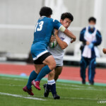 38分には、摂南大⑬ツイドラキが一本返す(ゴールも成功。13-40)も、ロスタイムに近大HO⑯平沼泰成が駄目押しのトライ(ゴール成功)で締めくくった。(13-47)