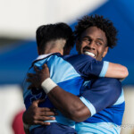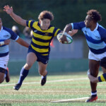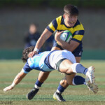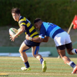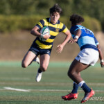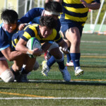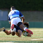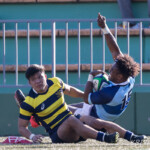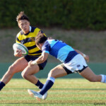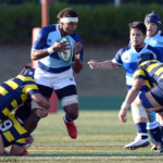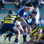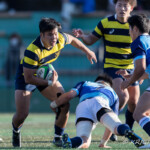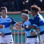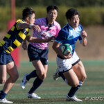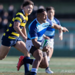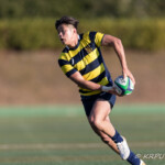 摂南大学は、後半38分、ハーフウェイライン付近からの攻撃で、左へ展開すると⑮ツイドラキが抜け出し相手陣ゴール前へ、ラック形成から⑨三田村からのパスを⑯米川が受けとりトライ(コンバージョン成功)、33-48とする。