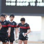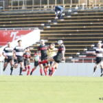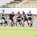 さらに、後半29分、④堀之内のトライ(コンバージョン成功)、後半33分と後半35分には⑩越智のトライ(コンバージョン成功)、後半37分、㉒戸羽のトライ(コンバージョン成功)、後半40分、⑪田中のトライ(コンバージョン成功)、後半42分、⑰岸井のトライと、6トライを重ねた大阪体育大学が終始圧倒しノーサイド。