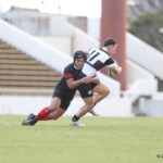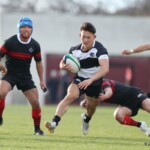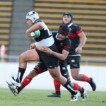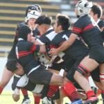 自力に勝る大阪体育大学は前半19分、大きく地域を前進するとペナルティーを得てスクラムを選択、そのまま押し切り左中間にトライ、コンバージョンも成功し0−19、3トライ目をあげる。