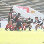 逆に大阪体育大学は後半23分、相手人ゴール前からペナルティーを得るとスクラムを選択、そのまま押し切り右中間にトライ、コンバージョンも成功し5−66とする。