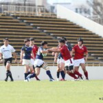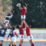 対する松山大学はラインアウトから圧力をかけペナルティーを獲得、相手陣22mまで地域を進める。