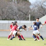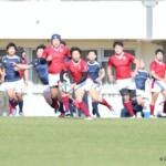 最後は後半41分、鹿児島大学⑬岩崎が走り切りトライ、コンバージョンも成功し7−56としノーサイド、鹿児島大学の快勝でゲームが終了した。