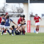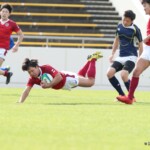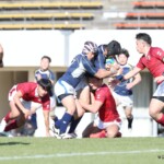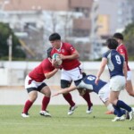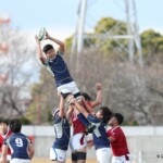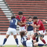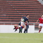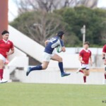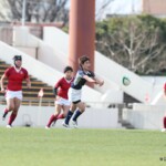 選手を入れ替えてテンポアップを図る鹿児島大学は後半22分、ラインアウトからフェイズを重ねるとアドバンテージを得たままキックパス、⑭小池がキャッチしトライ、コンバージョンも成功し7−42とする。