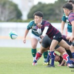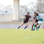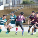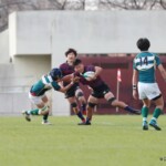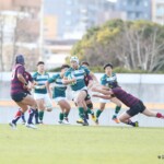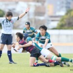 後半35分、東北大学は、相手陣22mのスクラムから左に展開、デイフェンスにつかまりながらもゴール前までボールを運び、最後は④藤田がトライ、⑭山梨のコンバージョンも成功し、31−0とする。