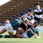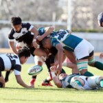 東北大学は、相手の連続攻撃に陣地を奪われるも、粘り強く体を当て続け、ノットリリースの反則を誘う。