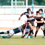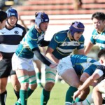 さらに後半38分、大阪体育大学は、相手の激しいタックルを受けながらもフェイズを重ね、㉑中村からボールを受けた④大村が20mを走り切り、右中間にトライ。⑩越智のコンバージョンも決まり、0−52とする。