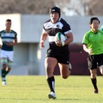 後半33分、大阪体育大学は左サイドから順目に素早く展開し、最後は⑫田口が左隅にトライ、⑩越智のコンバージョンが成功し、0−45とする。