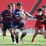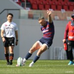 試合では、SH⑨ゲニアのテンポの良いパス出しや、SO⑩クーパーの巧みなパス回し、自在なポジショニング、絶妙のキックが目を引く。自らの動きで相手ディフェンスに穴を開けWTB⑭ジョシュア・ノーラが縦に切り込む攻撃は相手を翻弄した。