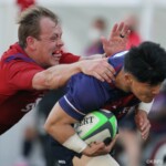 清水も34分のラックのサイド攻撃でLO⑤ジョシュ・ベックハイスが、37分にも相手ノックオンのアドバンテージを生かした攻撃でCTB⑫野田涼太がトライを奪ったものの及ばなかった。