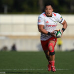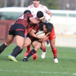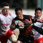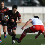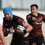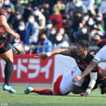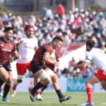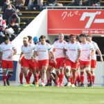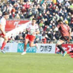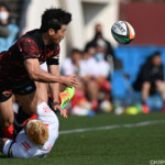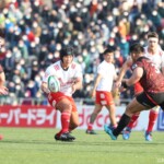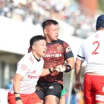 さらにブレイブルーパスは後半35分、自陣から攻撃を仕掛けると左サイドを大きく前進。最後は⑥リーチが右中間を走りきり中央にトライ。コンバージョンも成功し34−33と肉薄する。