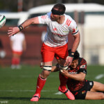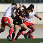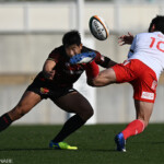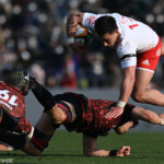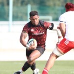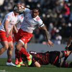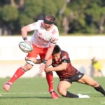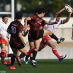 直後の自陣スクラムからの攻撃でヴェルブリッツはキックパス、一気にブレイブルーパスス陣へ進む。ペナルティーからチャンスを得るとショットを選択、⑩クロニエが冷静に沈めて、後半4分、27−7と後半も先手を取る。
