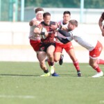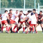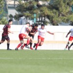前半26分、ヴェルブリッツはラインアウトからサインプレーで⑦佐藤が大きく前進。そのまま素早く動かし⑥ラウタイミが右隅に飛び込みトライ。コンバージョンも成功し21−0と得点を重ねる。