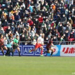 悪い流れを断ち切りたいブレイブルーパスは、相手陣のルーズボールを獲得すると左に展開し⑥リーチが前進、大きなチャンスを作る。