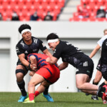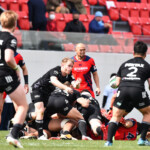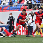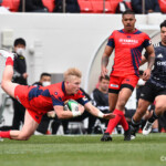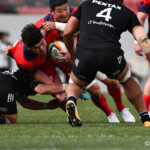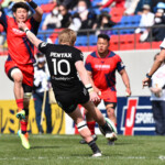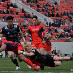 しかしここからようやくヤマハの逆襲が始まる。21分にゴール前での強力FW、№8⑧ヘルウヴェらの連続攻撃の後、WTB⑪マロ・ツイタマのトライで10-23。その後もSOの位置に入った⑮グリーンのキックパス等で2トライを返すが、この日はリコーの圧力が一枚上。終了間際のヤマハの必死の逆襲をしのいだリコーが22-23の一点差の激戦を制してリーグ戦初勝利を挙げた。