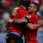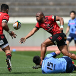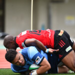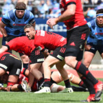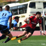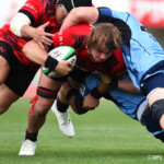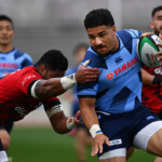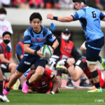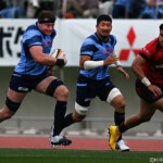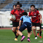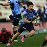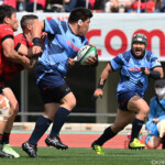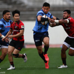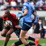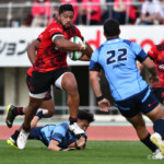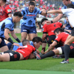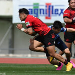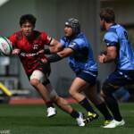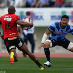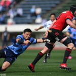 しかし、ドコモも8分中央付近ラックからSH⑨TJ・ペレナラの好判断でCTB⑫サミソニ・トゥアにつながりトライを挙げGも成って33―14。