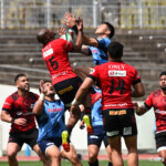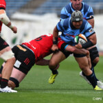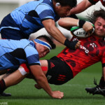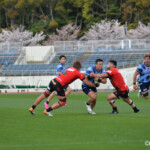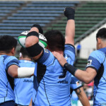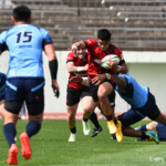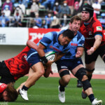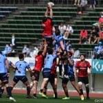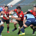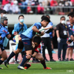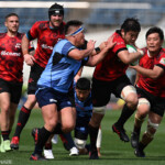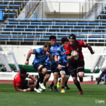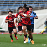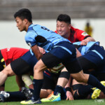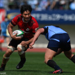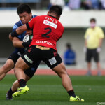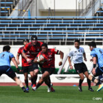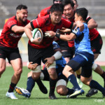 対するドコモも20分、ゴール前5m左ラインアウトを押し込みPR③北島大がトライし、SO⑩川向瑛のGも決まって19-7。しかし37分、ヤマハはモールでゴールに迫り、最後はPR③伊藤平一郎がトライ、Gも成功し26―7で折り返した。