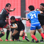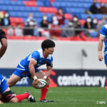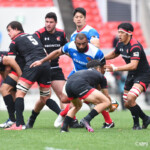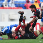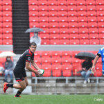 後半に入っても東芝のペースが続き、BKラインが常に前に出て激しくコンタクトする東芝の伝統を発揮してHondaに付け入るスキを与えない。FW・BKが一体となって5分、21分、33分、42分と4トライを重ねた東芝に対してHondaは修了間際の36分にWTB⑪尾又寛汰がトライを返すにとどまる。ゲームは終始力強いブレイクでHondaを圧倒した東芝がこれまでの試合のうっ憤を晴らすかのように17-53とHondaを大きくリードして2勝目を挙げた。