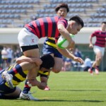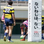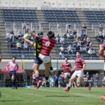 4分、22番安井拓馬、5分、13番江川剛人がトライと3連続トライの反撃で意地を見せるが、いずれもG不成功で15点を返すのみとなった。