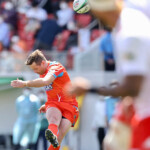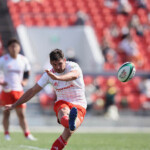 20分、トヨタはクボタ陣10mライン中央付近でペナルティを得、SO⑩ライオネル・クロニエが落ち着いてゴールを決め8-14と取って取られての展開だった。