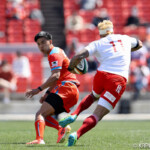 劇的なシーソーゲームを制したトヨタがレッドカンファレンス2位を決め来週から始まるプレーオフトーナメントに挑む。マンオブザマッチには大逆転トライを決めたトヨタWTB⑭高橋汰地が選ばれた。