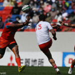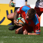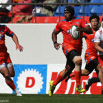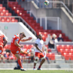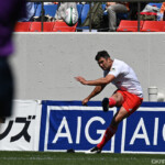 トヨタも11分、ハーフウェイ付近のマイボールスクラムからバックスへ展開し最後はWTB⑪ヘンリー・ジェイミーが左隅にトライし5-7と追い上げる。