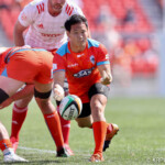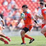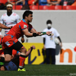 24分、クボタはゴール手前10m付近のスクラムから展開し最後はHO②マークスがこの日2本目のトライを挙げた。ゴールも成功し18-24と逆転。