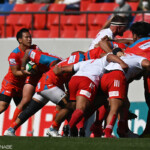 その後はお互いに攻め合うもミスが続き得点に結びつかず。このまま前半終了かと思われた前半39分、トヨタはクボタ陣内ゴール手前7m付近でペナルティを得たがスクラムを選択。このスクラムで反則を繰り返したクボタPR③山本剣士がシンビンを受け一時退場となった。更に41分にもFL⑦ピーター・ラピース・ラブスカフニがシンビンを受け2人目の一時退場者を出したクボタは13人で戦う厳しい状況に追い込まれた。数的優位に立ったトヨタ、何度もゴール前に迫るもののクボタの厚いディフェンスの前にトライを奪えずそのままハーフタイム。ここで得点を奪えなかったトヨタ、耐えたクボタ。後半が注目された。