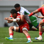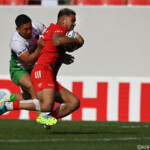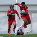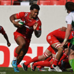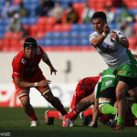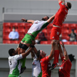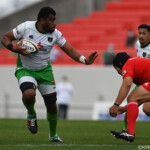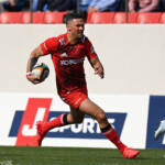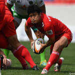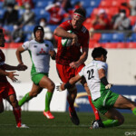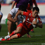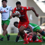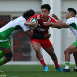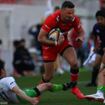 さらに14分にも三菱重工相模原のノックオンアドバンテージのチャンスを逃さず、30m左中間ラックから左ショートサイドにSH⑨日和佐、FB⑮山中亮平と繋ぎ、山中がタックルをかわし左中間にトライ。TMOがあったがトライは認められ0-12と差を広げる。