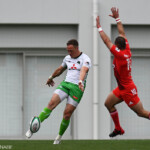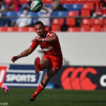 このままずるずると引き下がれない三菱重工相模原は、17分に神戸製鋼陣22mLに迫り、反則を誘うと、SO⑩ジェームス・ウイルソンがPGを決め3-12。この試合初得点を挙げる。