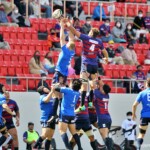 強豪、パナソニックに対するチャレンジャーの近鉄は、オーストラリア代表ハーフ団の一人であるSHウィル・ゲニアの負傷欠場と先週の一回戦での危険なプレーに対してレッドカードが付与され6試合の出場停止処分となったペネトレータのNo.8ロロ・ファカオシレアの出場停止がどこまで響くか。試合は、緊急事態宣言の発令に伴い一時は無観客も想定されたが、地元の古豪・近鉄の凱旋マッチで各国代表を数多く擁するパナソニックとの顔合わせだけに4,000人近くのラグビーファンが駆けつけ、パナソニックSO⑩松田力也のキックオフで開始された。