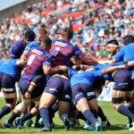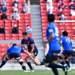 しかしここからじわじわとパナソニックが近鉄サイドに攻め込む。28分にFW・BK一体となった連続攻撃からディフェンスラインを突破したCTB⑫ハドレー・パークスからのパスを大外で受けたゲームキャプテンNo.8⑧ジャック・コーネルセンが右隅にトライ、SO⑩松田が難しい角度のゴールも決め7-7として前半を終えた。得点からみれば近鉄の善戦とは言えるが、スクラムでかなり激しくパナソニックのプレッシャーを受けたこと、強い北風の風上に立った近鉄が有効にキックを使えていないことが気がかりであった。