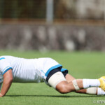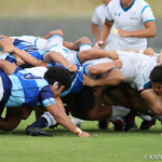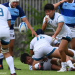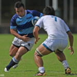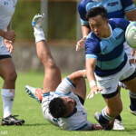摂南大の攻撃を耐えた近畿は14分に敵陣10m右中間スクラムからルーズボールを拾ったWTB植田が右隅にトライ、GKもCTB福山が成功し14-0とする。