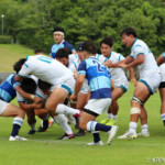 今日まで近大はFWで切り崩してBKで仕留めることを目標に掲げてトレーニングしてきました。選手の体重も増え、特にロック陣が大きくなったのでスクラムも安定してきたが、ブレイクダウンを制しないと経験豊富な4年生BK陣を生かせない。