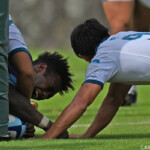 前半4トライを取れたが単体の動きで連動した動きになっていない。後半の20分までやきもきしたがメンバーが変わってから動きが良くなってきて目標に近い形になってきました。課題はラインアウトのデフェンスとボールの動きが悪いのでFW、BKともに修正していきたいです。