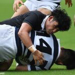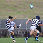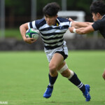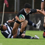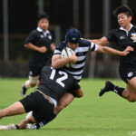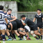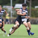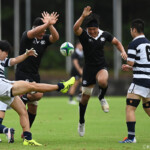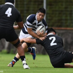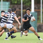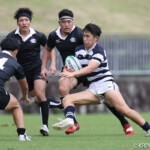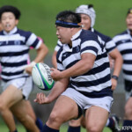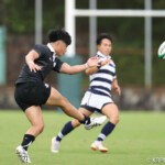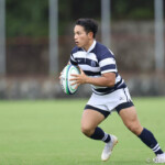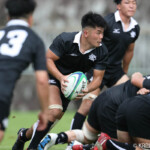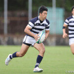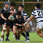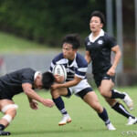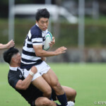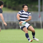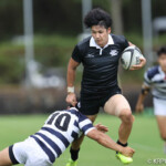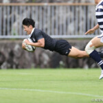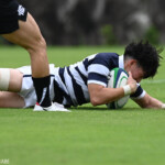 関大は31分にも、相手ラインアウトミスを逃さずCTB⑬三宅伶のラインブレークから⑨末井にパスし、ゴールポスト下にトライ(ゴール成功)。(7-21)