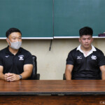 しかし、ロスタイムには大体大PR③猪頭建辰がゴール下へトライ(ゴール成功)し、1トライ1ゴール差と迫り前半を終える。(14-21)