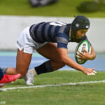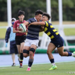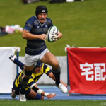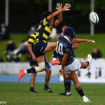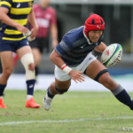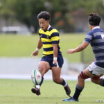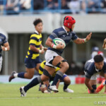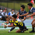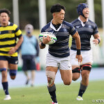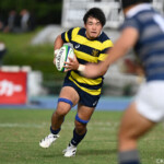 すると2分、7番FL小島のゲインから左に回し大外にいた5番LOキャプテン南が左中間にトライし同志社がリードする。(10番G成功、7-14)