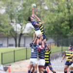 5分にも、立命館のハイパントを同志社8番No.8木原が自陣10Lでナイスキャッチし相手陣へ、10番嘉納、9番SH田村と渡り田村が30mを走って右中間にトライし立命館を突き放す。(10番G成功、7-21)