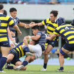 同志社は31分、今度は15番FB山口が個人技でラインブレイクし中央にトライ(10番G成功、14-35)、35分にも6番FL梁本のトライで試合を決めた。(22番倉岡G成功)