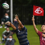 2021ムロオ関西大学ラグビーAリーグ第3節、左から右にやや強い風が吹く滋賀県大津市皇子山陸上競技場の第2試合は、前節共に敗れ連敗はできない立命館大学と同志社大学の対戦。