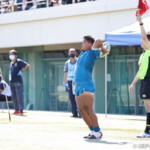 リードを許した近大は33分、G前20m左中間ラックからCTB⑬中洲晴陽が抜け出して中央にトライを決め、CTB⑫福山竜斗のGが成功して19-14と再逆転。