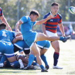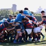 後半も先手を取ったのは近大。6分、G前5m左ラインアウトから右展開し最後はCTB⑫福山が相手DFを突破し左中間にトライ、自身のGも成功し29-21。この試合、始めて7点以上の差がついた。