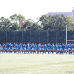 8分、相手ゴールポスト右ラックから右展開しWTB⑭植田和磨が右中間トライ、CTB⑫キャプテン福山竜斗のGも成功し7-0と幸先よく先制した。