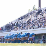 秋晴れの鶴見緑地競技場。コロナ禍緊急事態宣言緩和による大阪で今季初の有観客試合は、期待を寄せるファン1033人が見守る中、関西学院大学のKOで開始された。