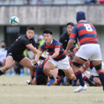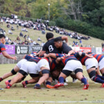 天理大のミスからチャンスを掴んだ関学大は43分に敵陣左ゴール前5mラインアウトからモールを形成しHO平生がサイドを突破し、左中間にトライ、GKもFB奥谷が成功、26-12と追い上げて前半が終了。
