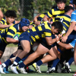 スクラムからのプレッシャーで攻撃に優位に立つ近大、G前のラインアウトからドライビングモールを得点に繋げる立命館と、持ち味を発揮した両校のゲーム運びは僅差得点で前半を折り返した。