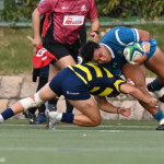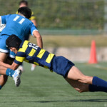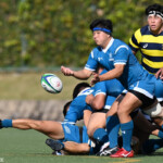 今度は近大が21分、相手G前5m右中間ラックから左展開し、最後はNo8⑧小寺直希がGポスト左にトライを奪った(SO⑩半田裕己G成功、14-5)。