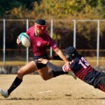 すると21分、敵陣左10mのLOから右に回し12番CTB大串蓮が右ライン際で2人かわしてトライし奈良が神戸を突き放した。(G失敗、17-0)
